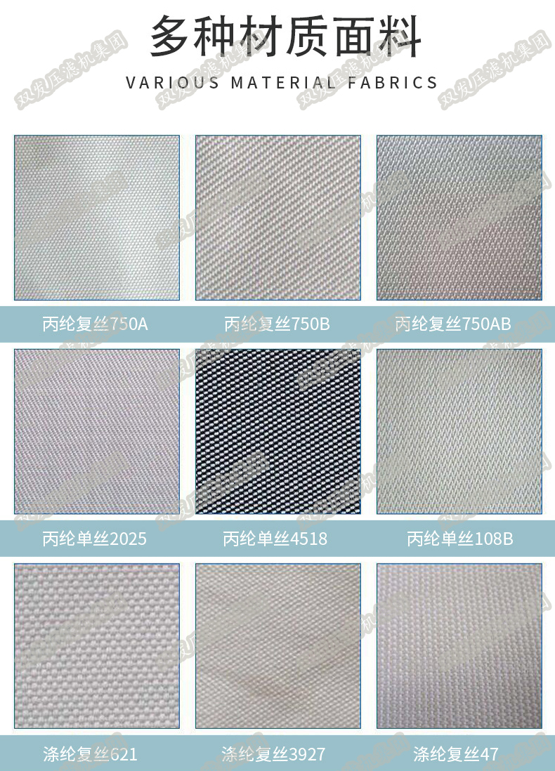 壓濾機(jī)濾布選型尤為重要,想要選好壓濾機(jī)濾布,首先需要的就是了解物料的酸堿性、溫度、濃度等。物料性質(zhì)掌握之后,就可以選擇相對應(yīng)的濾布材質(zhì),濾布材質(zhì)可分為:滌綸、丙綸、錦綸或維綸。選錯型號不僅會影響濾布壽命,還會直接影響到最終過濾效果。