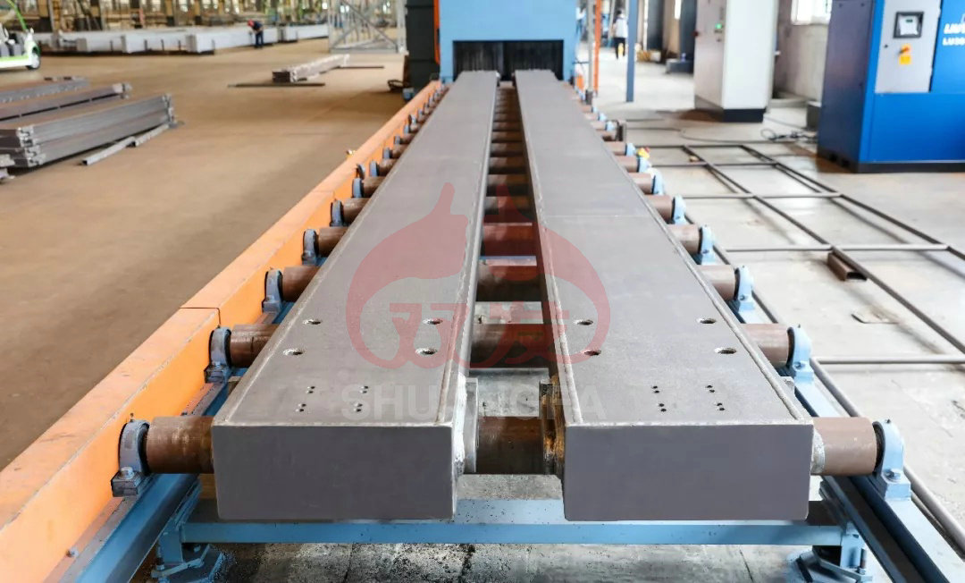 1)壓濾機(jī)機(jī)架在設(shè)計(jì)上吸取了德、美、日、法等國(guó)的先進(jìn)技術(shù),其中壓濾機(jī)機(jī)座、壓緊板、止推板,材質(zhì)選用Q345鋼板,用二氧化碳保 護(hù)焊焊接成形式,經(jīng)回火定型處理后,用高速氣流拋丸機(jī)噴砂處理,不僅把表面的銹及氧化層除掉,并在其表面打出細(xì)小麻窩,使油漆附著 力更強(qiáng),不易脫落。具有耐腐蝕、硬度高、抗拉強(qiáng)度大、抗沖擊性好等優(yōu)點(diǎn),經(jīng)超壓試驗(yàn),安全系當(dāng)選達(dá)2.2倍,可確保使用安全、穩(wěn)定。
